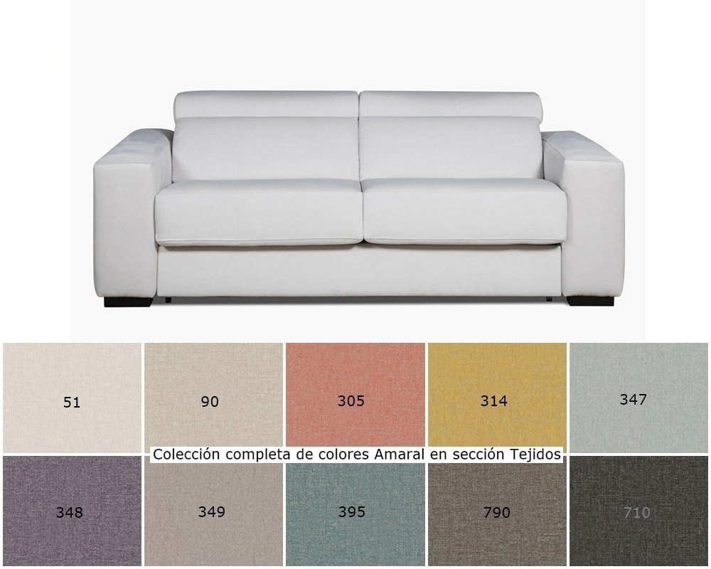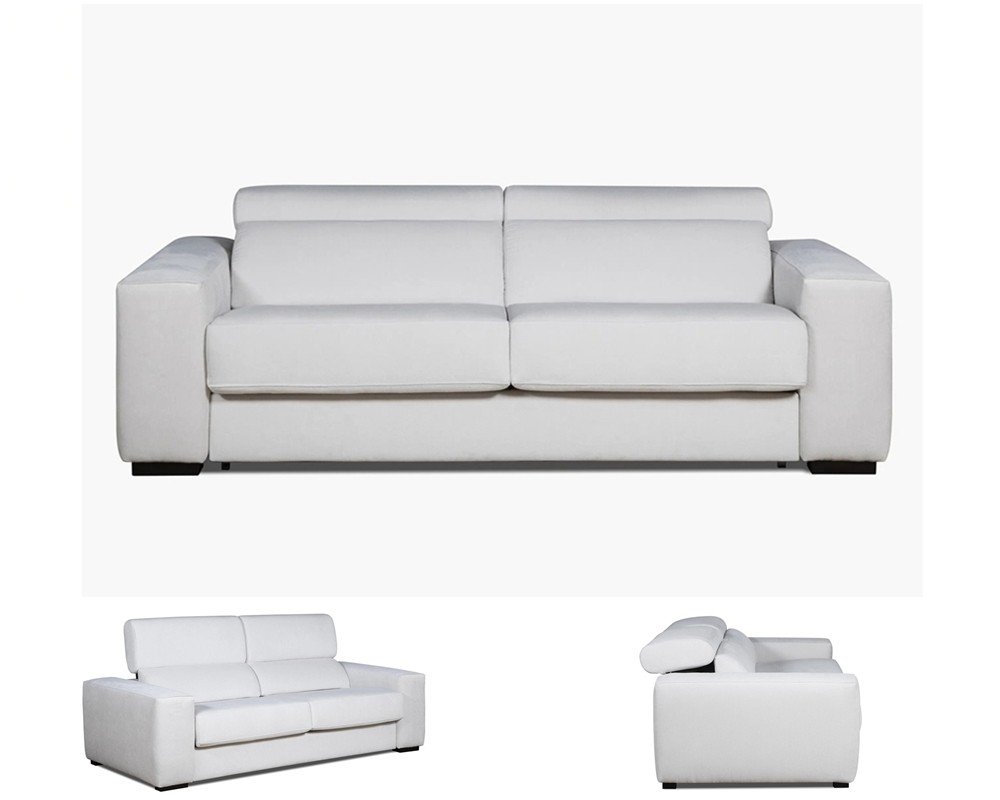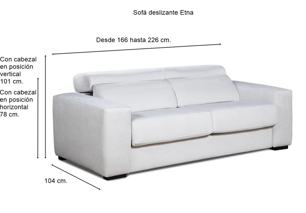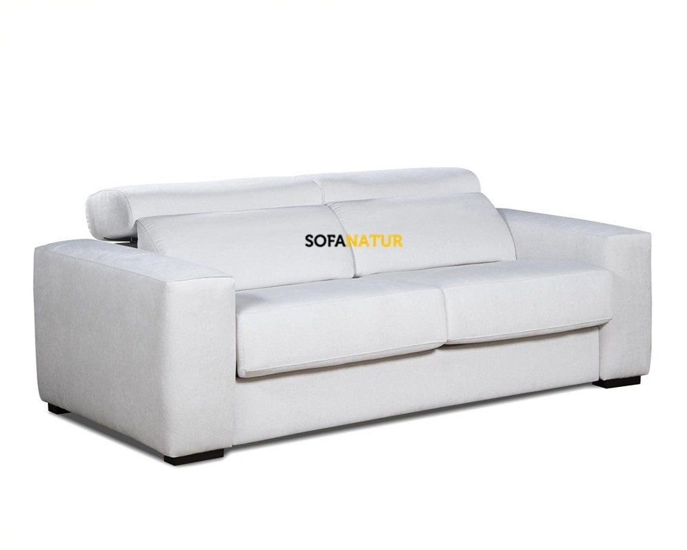 Sofá lineal con 2 asientos extensibles y cabezales abatibles.