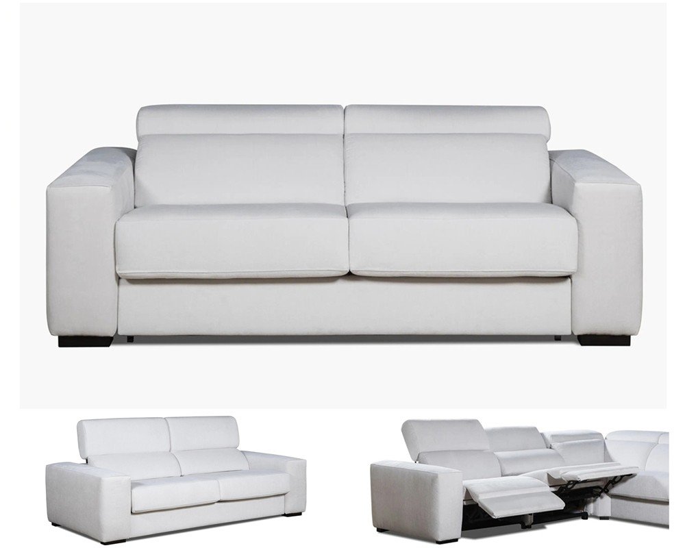 Sofá lineal con asientos relax motorizados y cabezales abatibles.