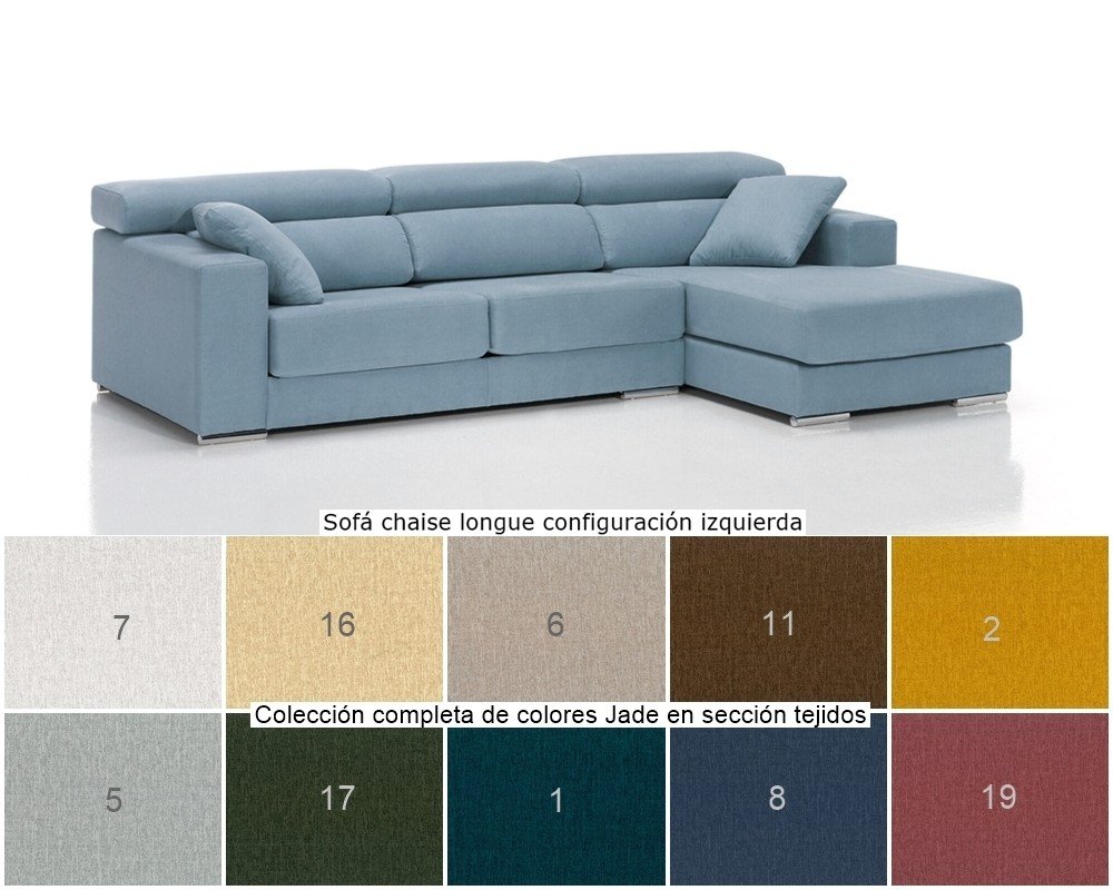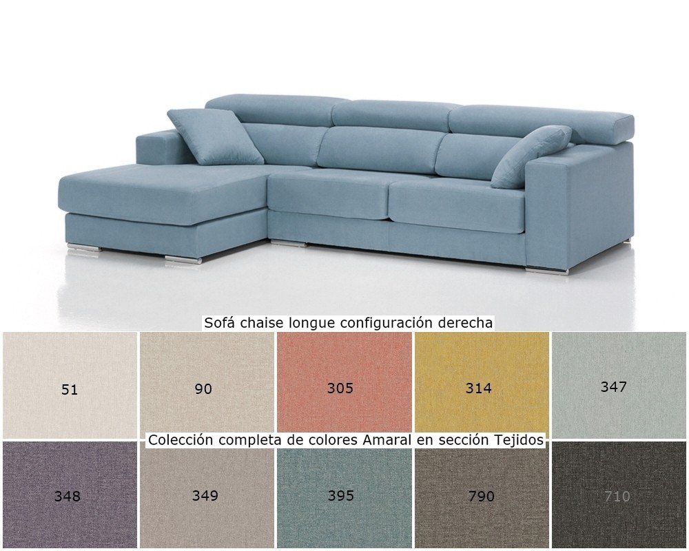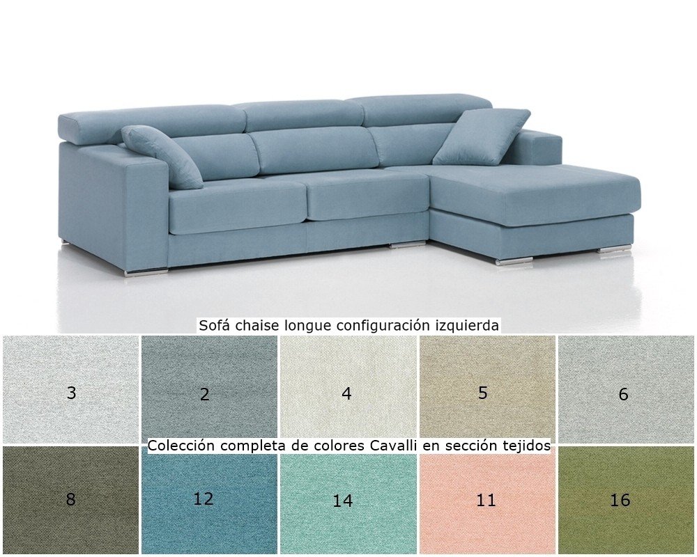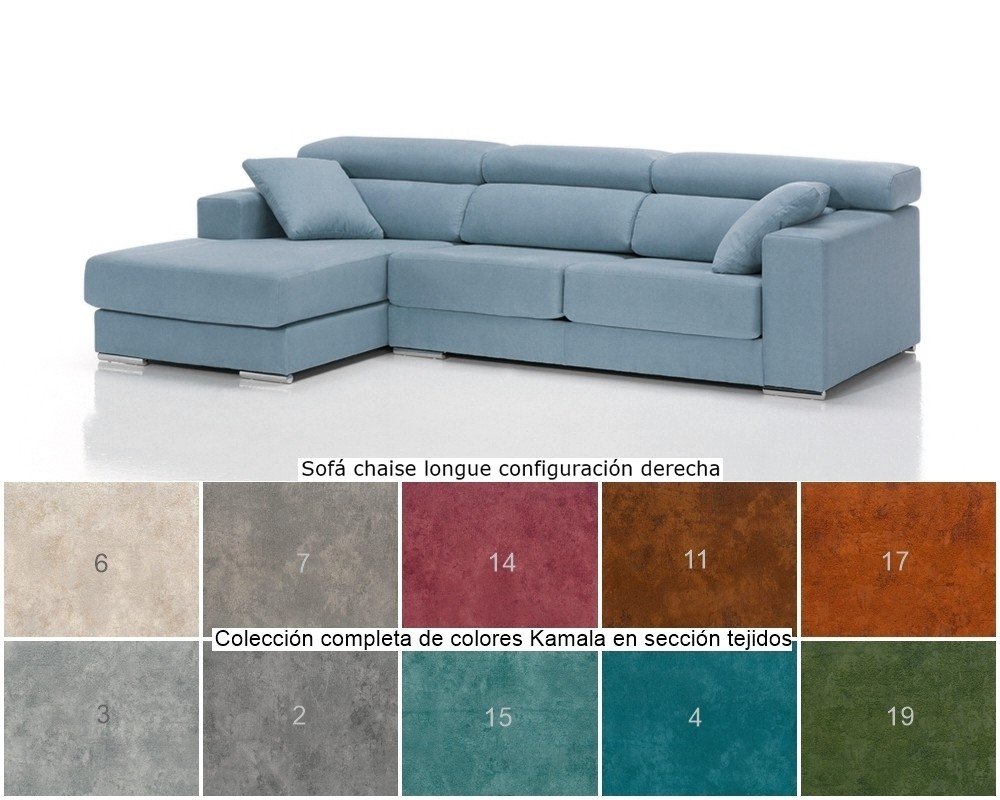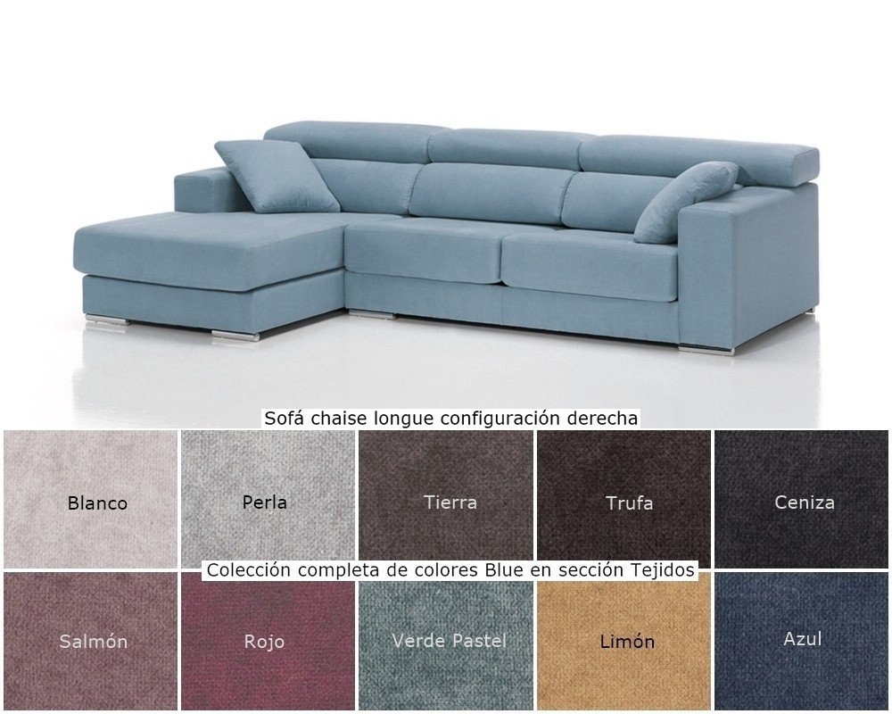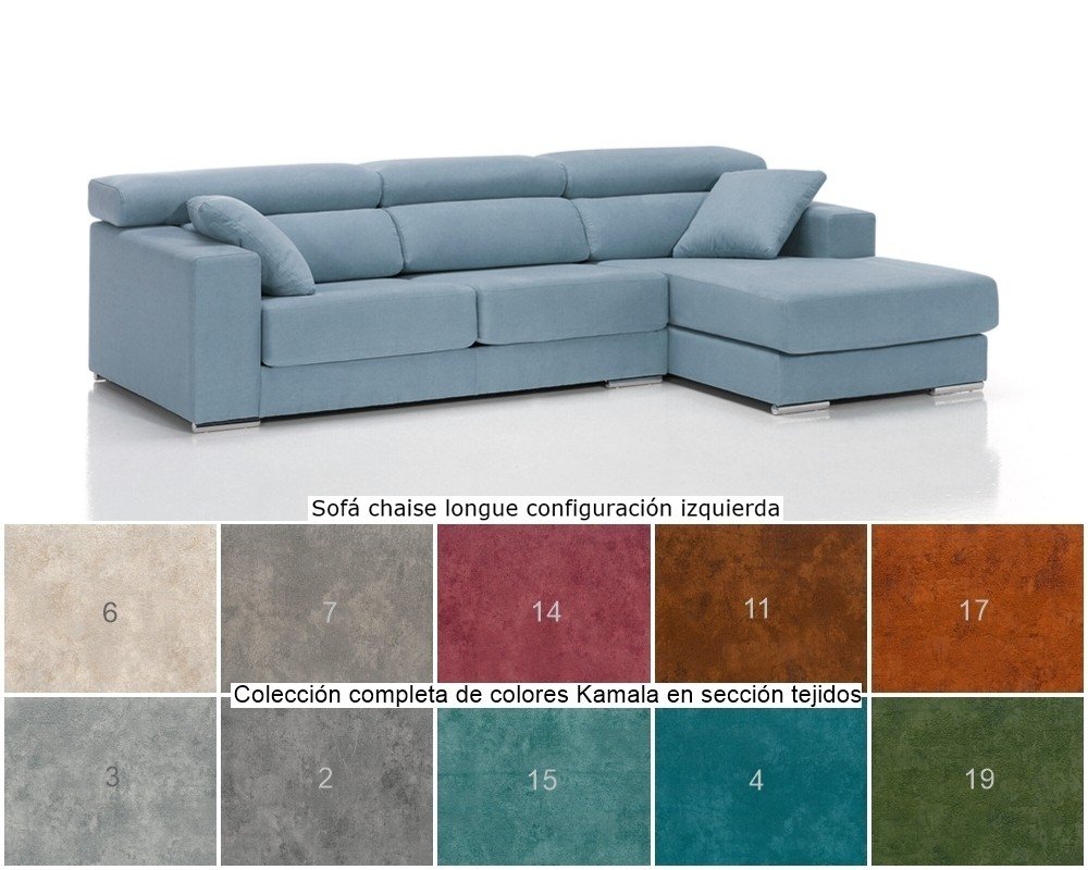 Sofá con 2 asientos extensibles, chaise longue arcón y cabezales abatibles.