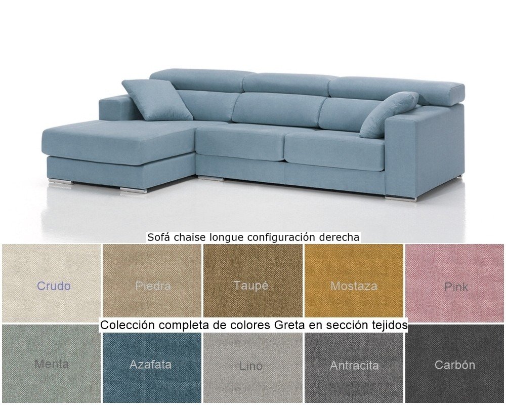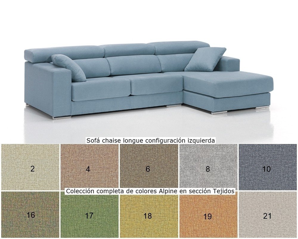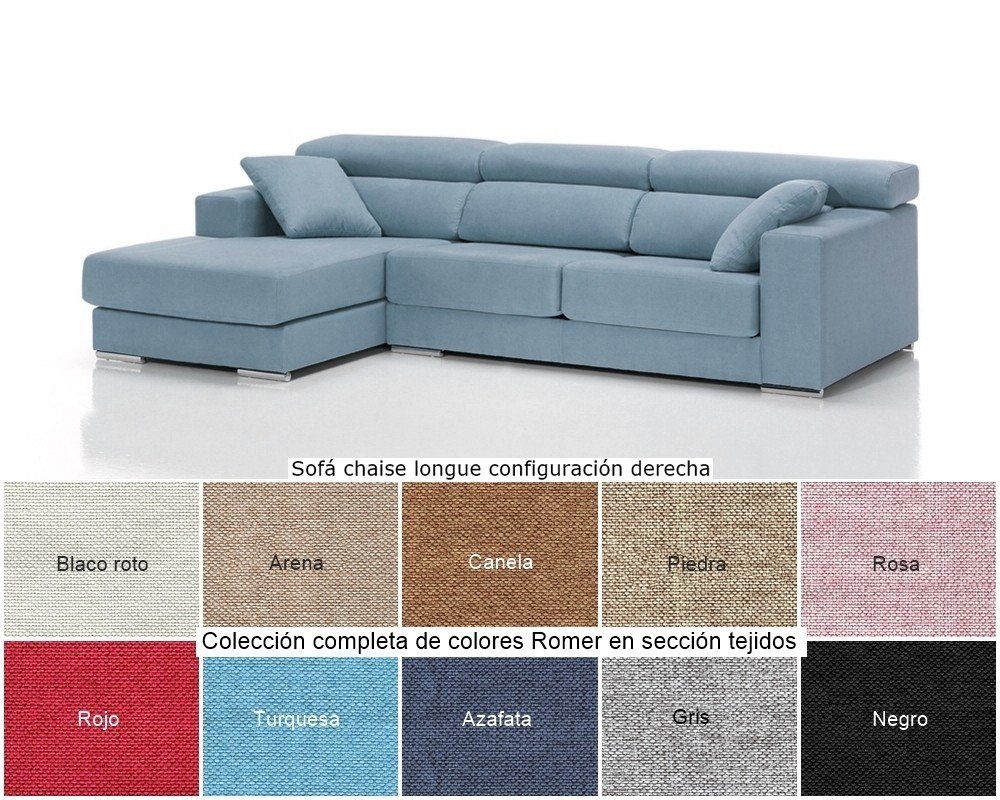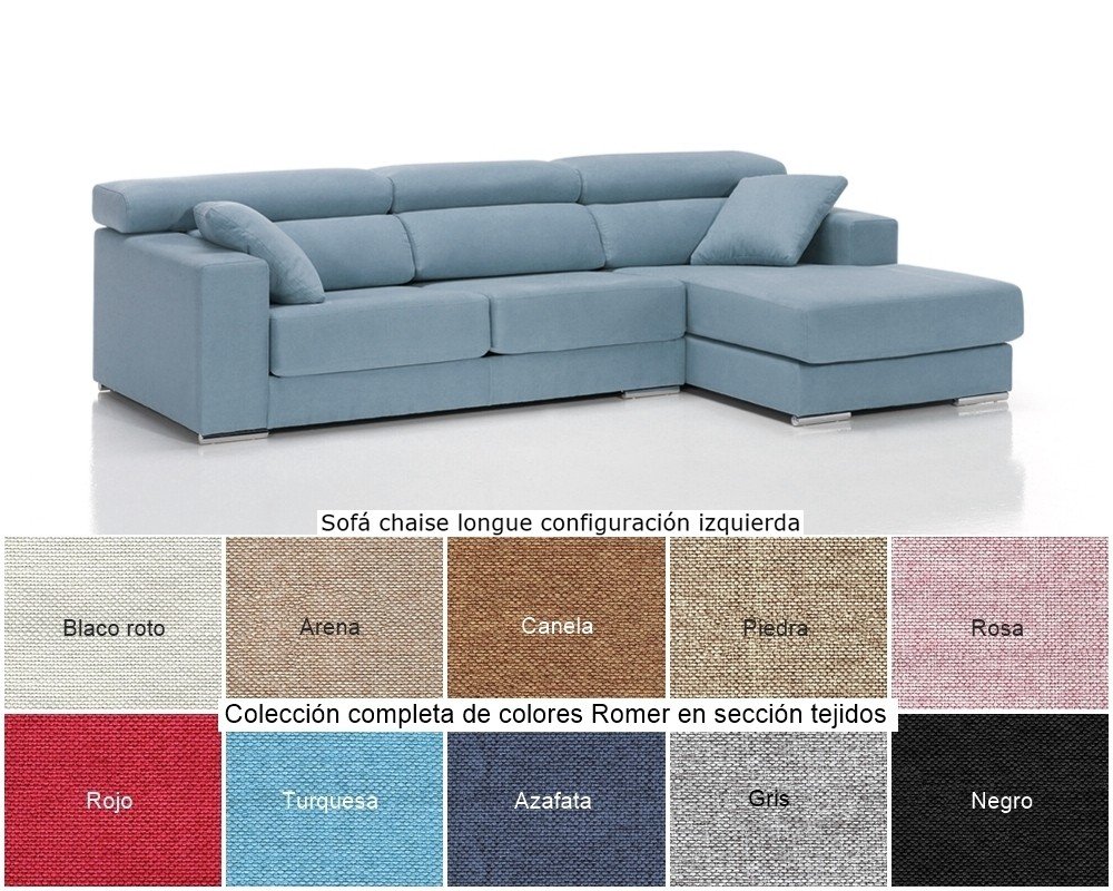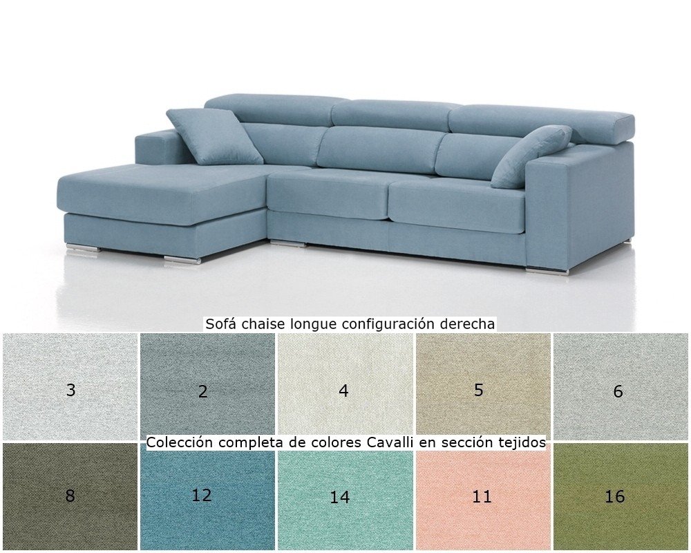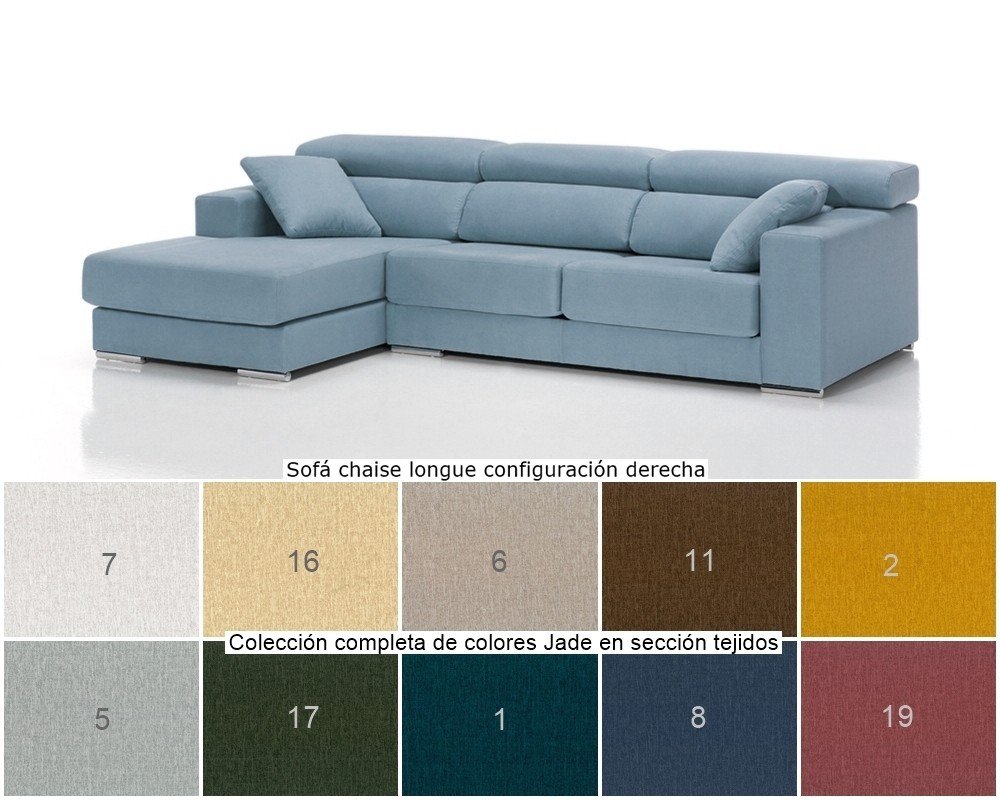 Sofá con 2 asientos extensibles, chaise longue arcón y cabezales abatibles.