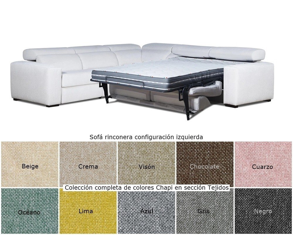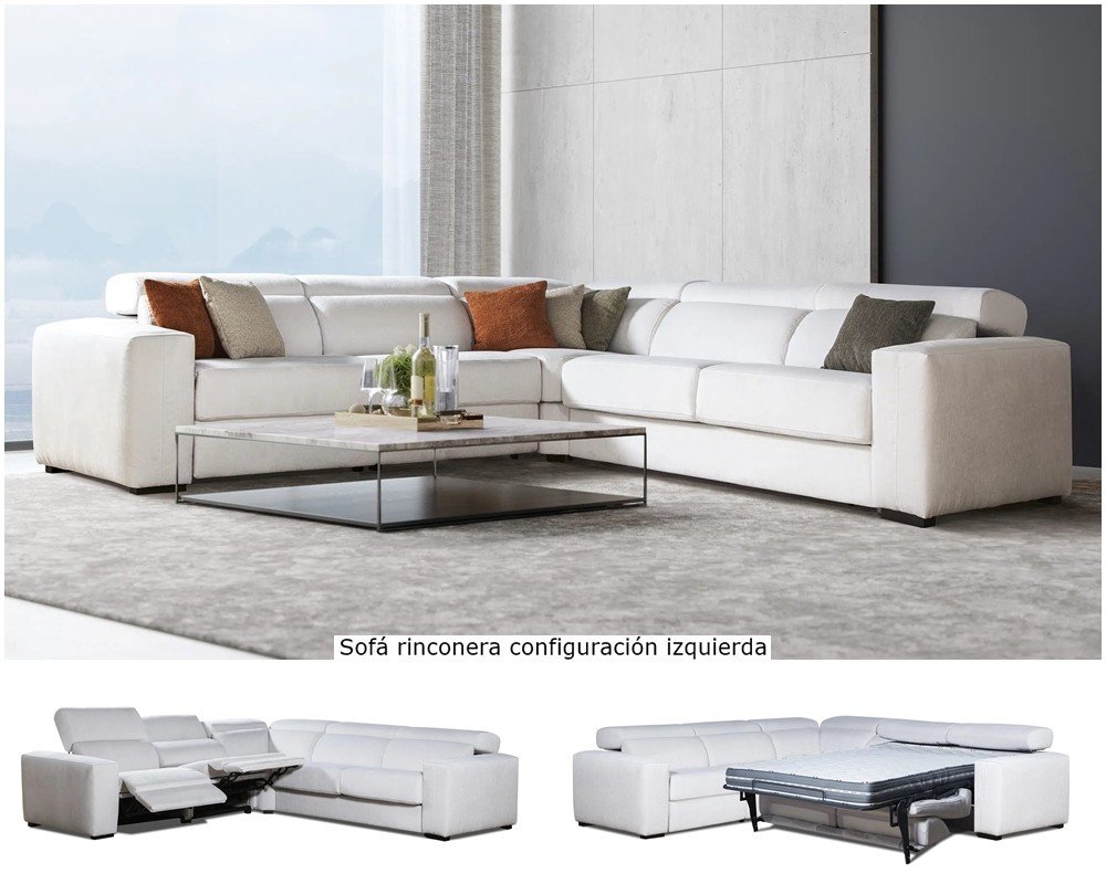Sofá rinconera con con cama apertura italiana y 2 relax motor.