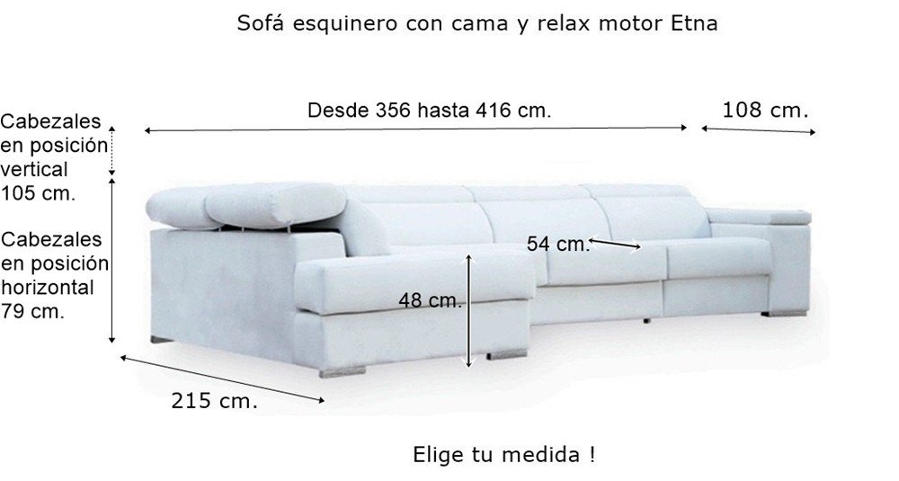 A parte de las medidas de sofá rinconera que te ofrecemos, tienes la opción de añadir más asientos relax o configurar sofás individuales con o sin cama, desde el sillón hasta las medida de sofá que necesites.