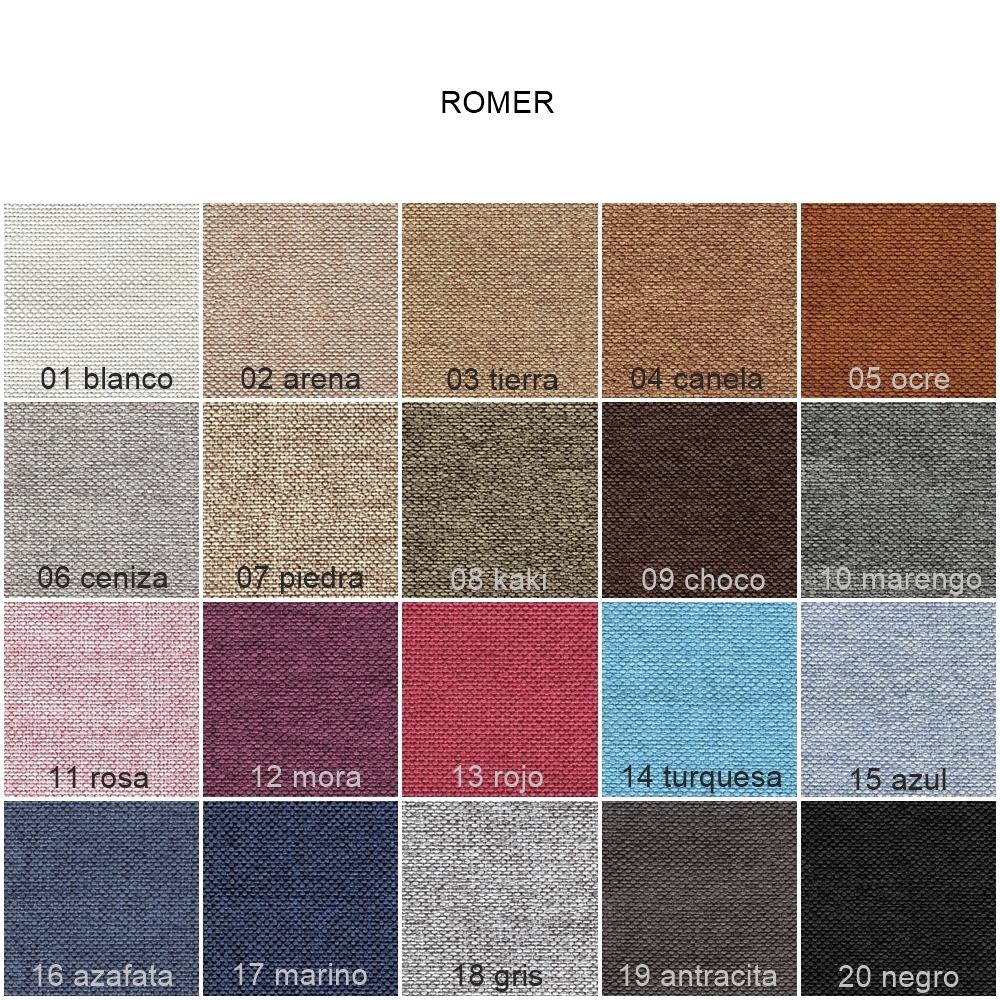 Los asientos son desenfundables con espuma de poliuretano densidad 30 kg/m3, recubiertos de fibra y con un nivel de firmeza medio. Las riñoneras y cabezales también son desenfundables con espuma de poliuretano densidad 20 kg/m3 de tacto suave. El brazo tipo siesta incorpora fibra hueca siliconada 100% y también es desenfundable.